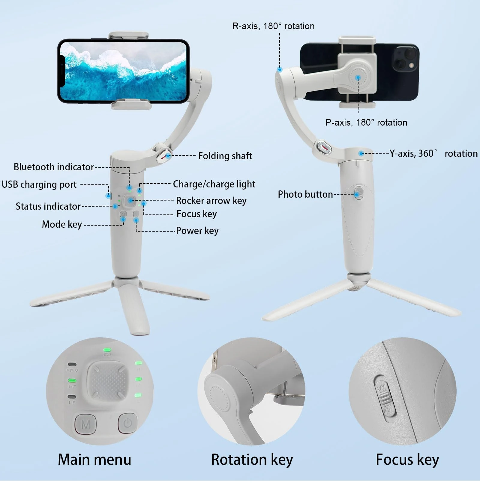 Capture smooth, professional-quality videos with the Mark M1 3-Axis Smartphone Gimbal Stabilizer, designed for content creators, vloggers, and everyday users. Equipped with advanced 3-axis stabilization, this gimbal ensures shake-free footage whether you’re recording videos, live streaming, or taking photos.